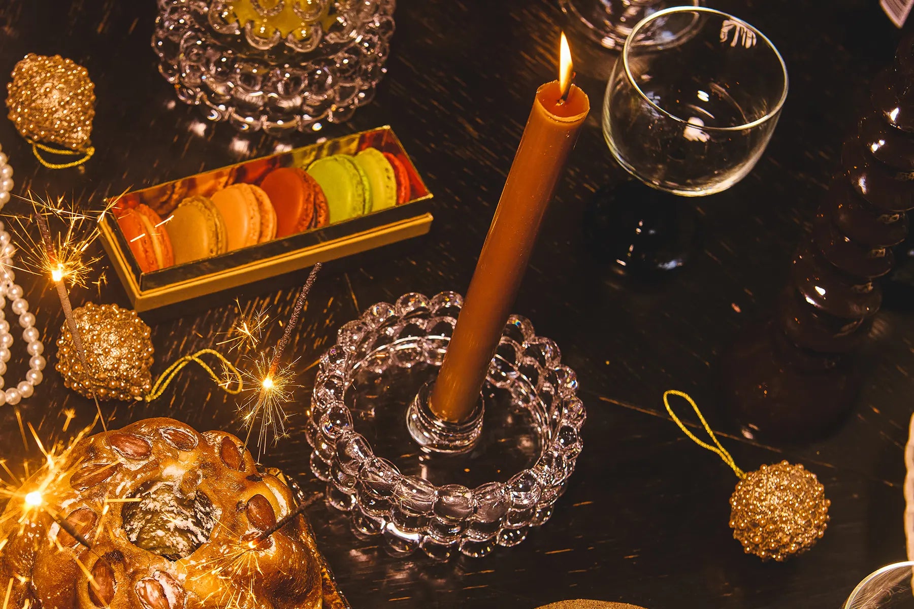 Candelabro con un diseño encantador y burbujeante: un detalle festivo que se adapta a todas las configuraciones de mesa del fin de semana.