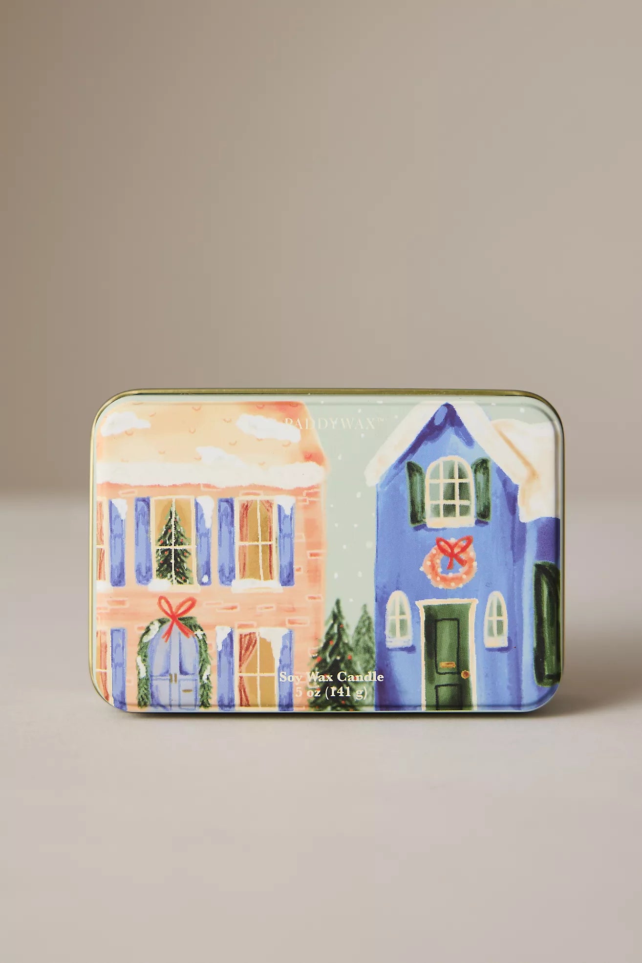 Paddywax's velas de lata están bellamente ilustradas con acogedoras escenas navideñas, impregnando tu hogar de aromas festivos.