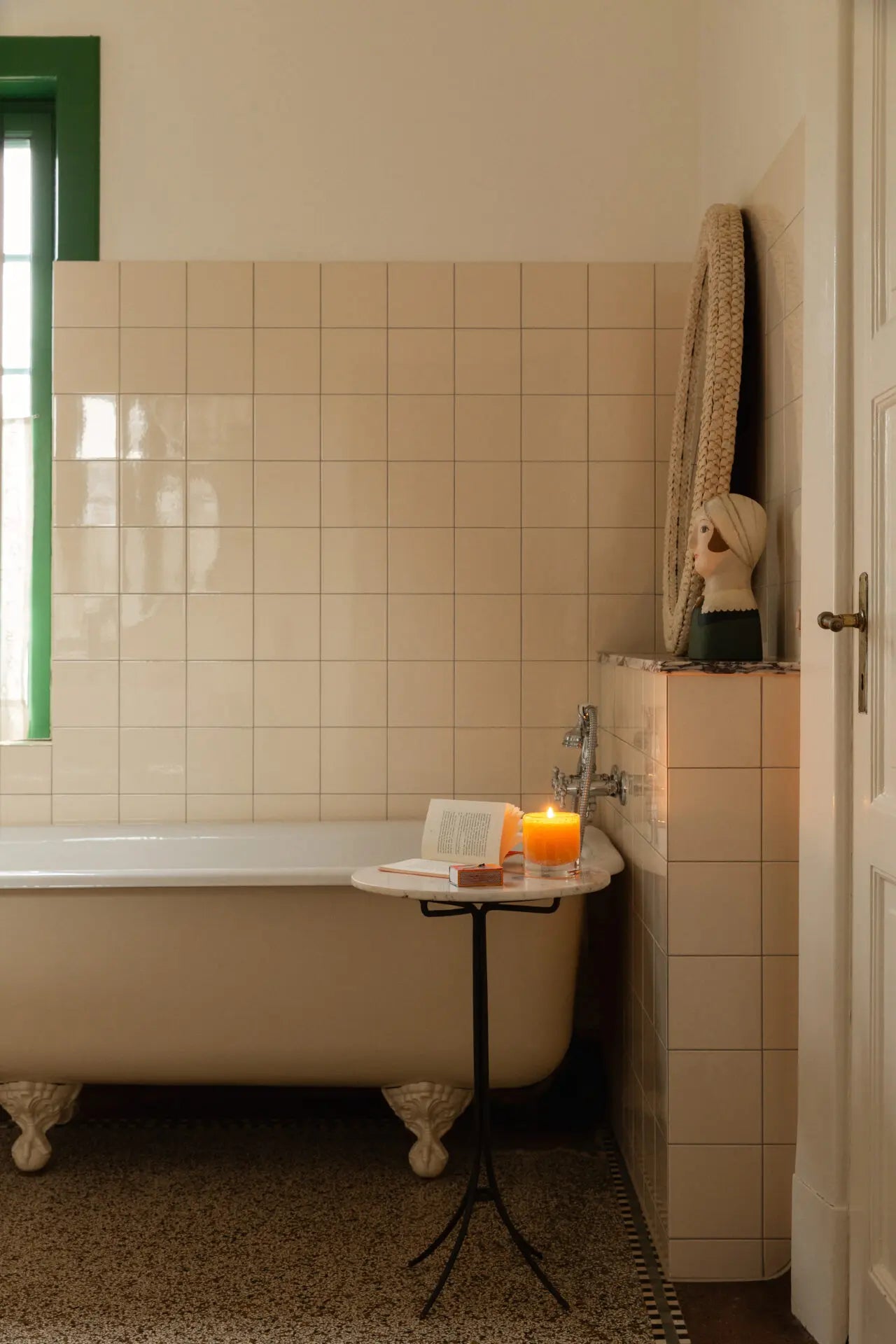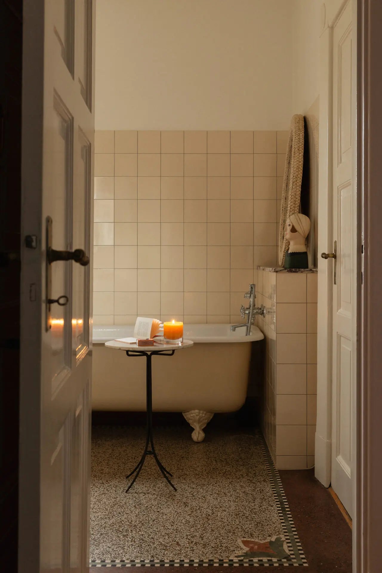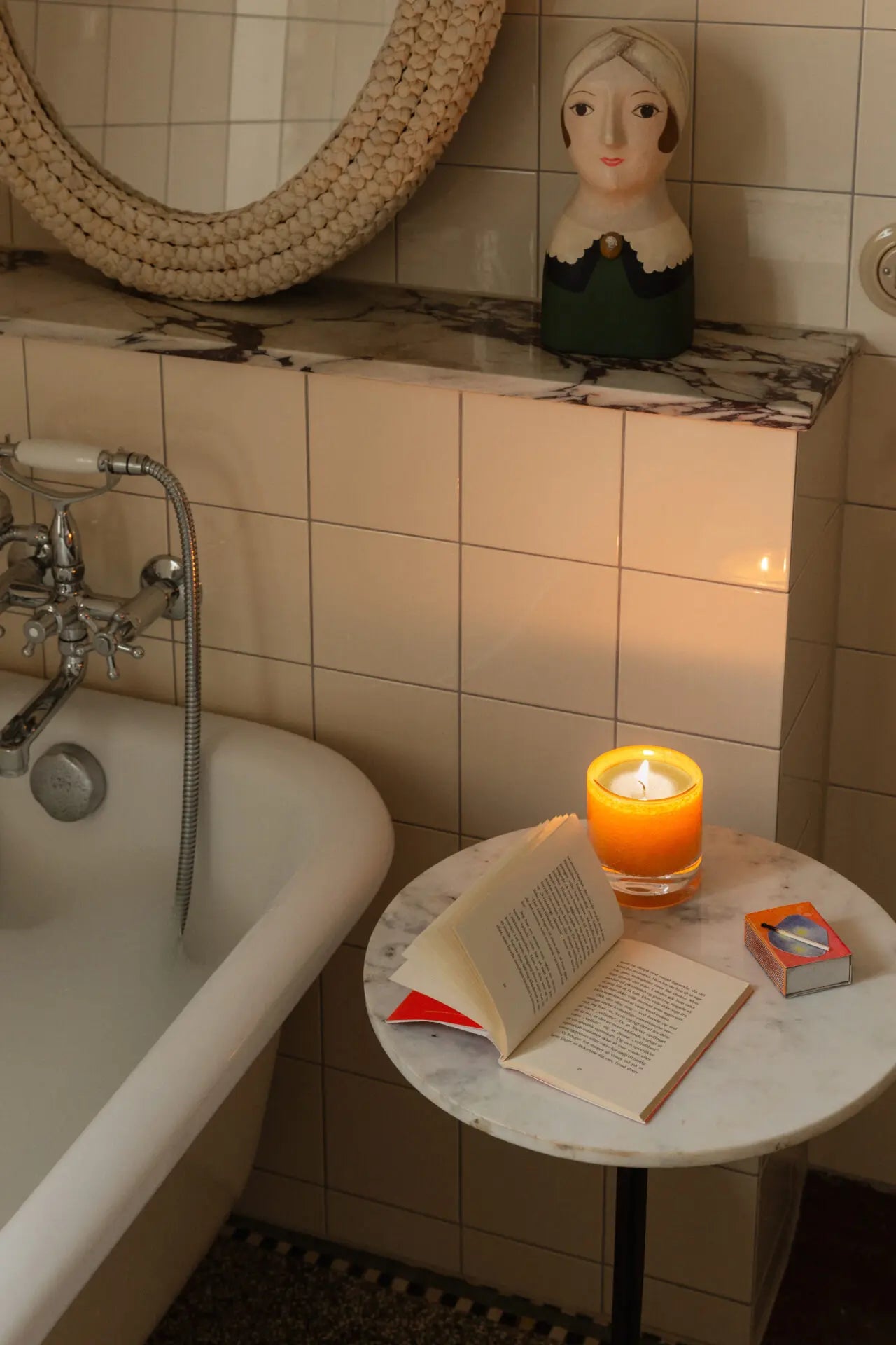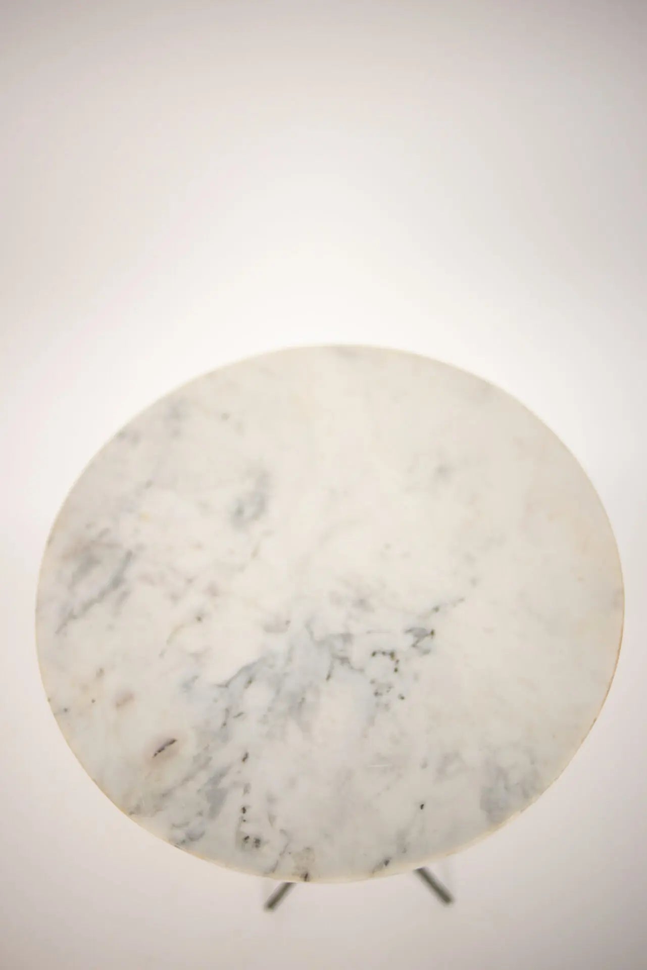 Mesa auxiliar de inspiración vintage con una hermosa tapa de mármol. El delgado marco de hierro y la elegante superficie le dan a la mesa un aspecto lujoso.