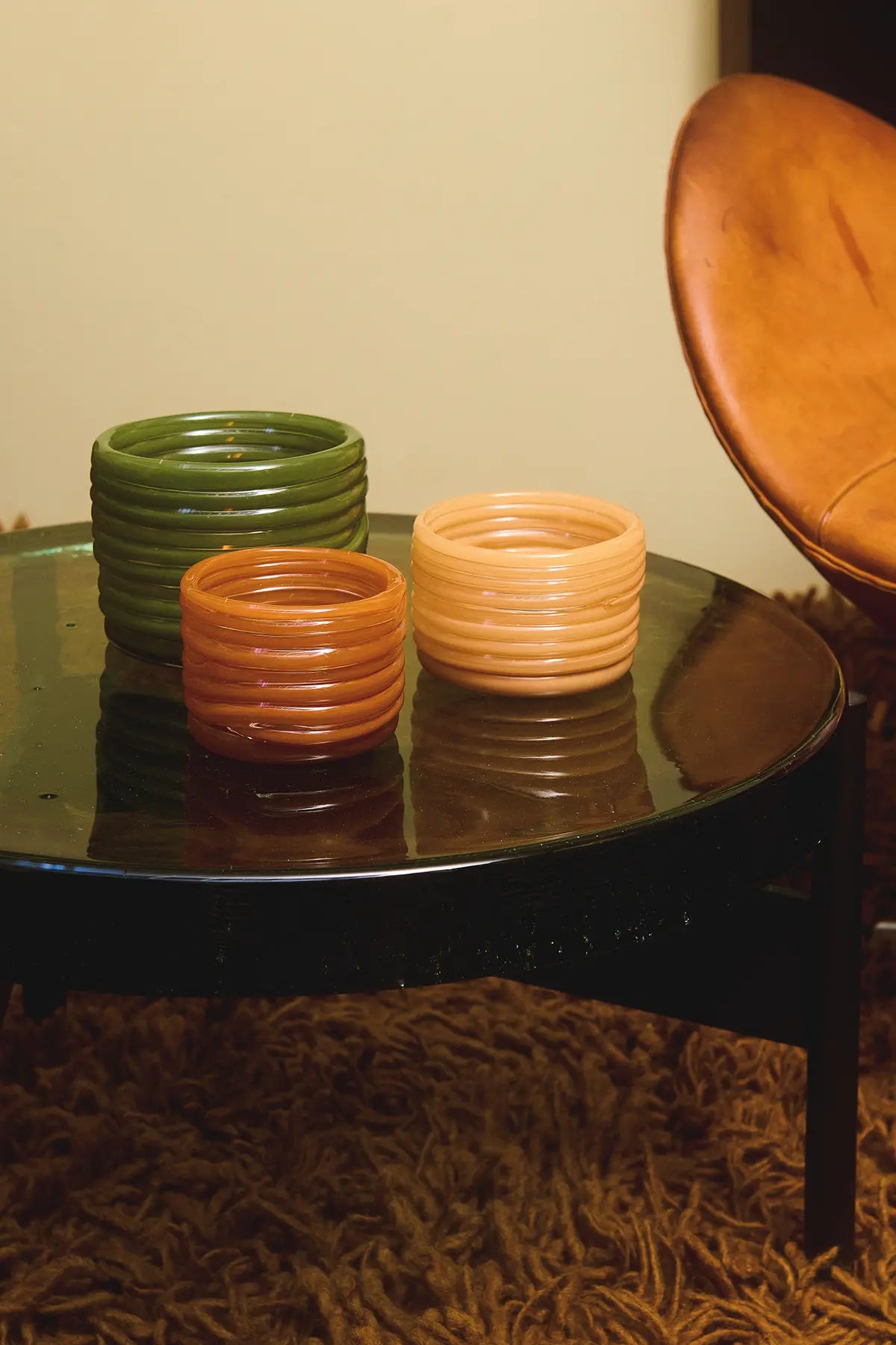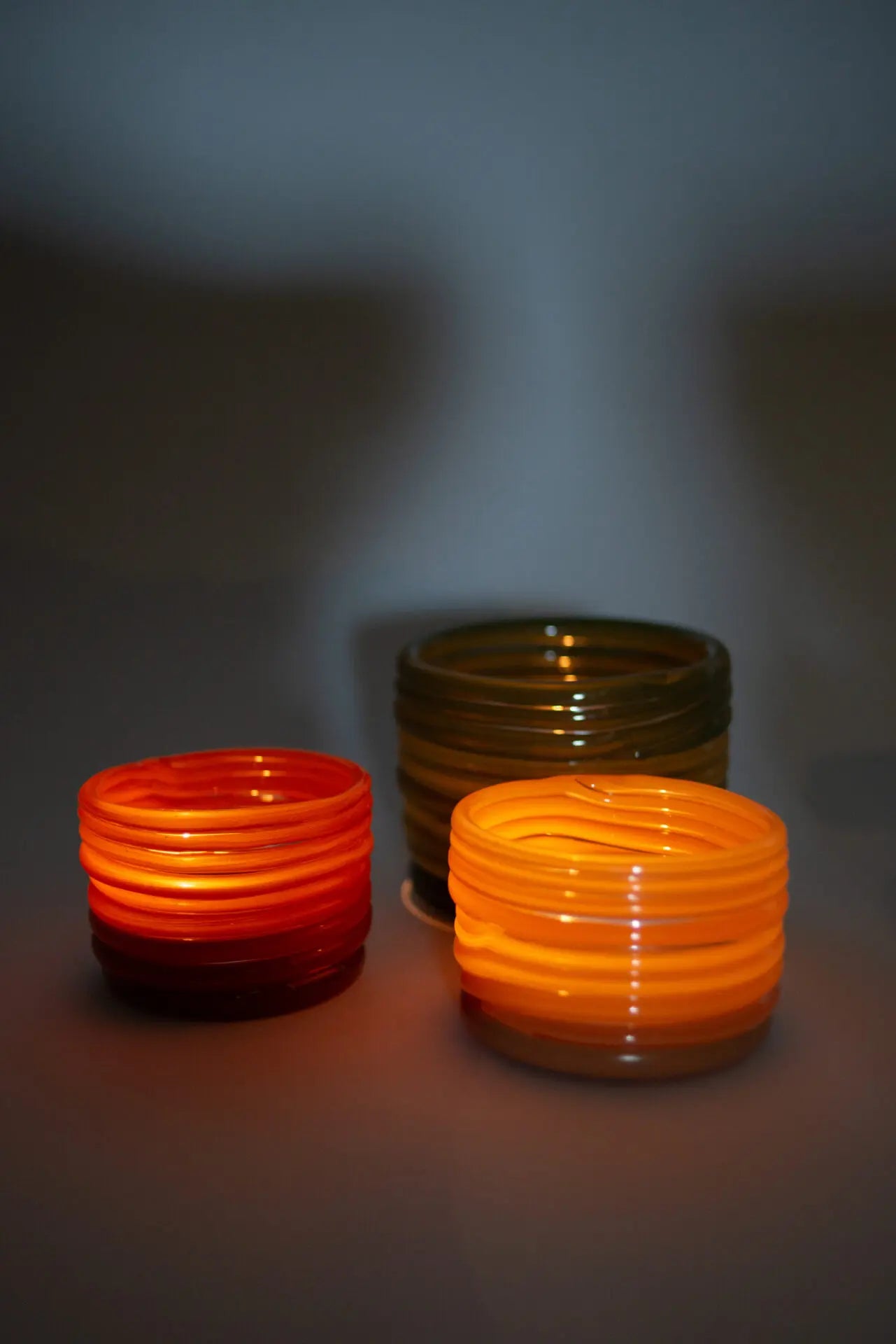 Ø:14, H:11cm elaborado de manera artesanal en cristal. Puede variar de la forma de uno a otro recordad que son artesanales